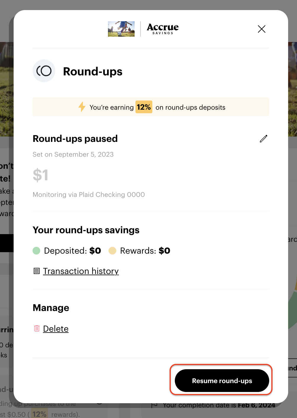 If you have paused your Round ups and would like to start monitoring your account again just follow the steps below to restart.