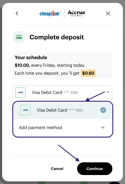 The easiest way to save and make sure you continue to get the highest amount of rewards possible for your deposits is to set a recurring schedule to make deposits. You can use a debit card or bank account and set an automatic weekly, bi-weekly, or monthly deposit into your wallet. You get to choose the amount and you can change or delete the schedule anytime. If you would like to set up your automatic deposits just follow the steps below!