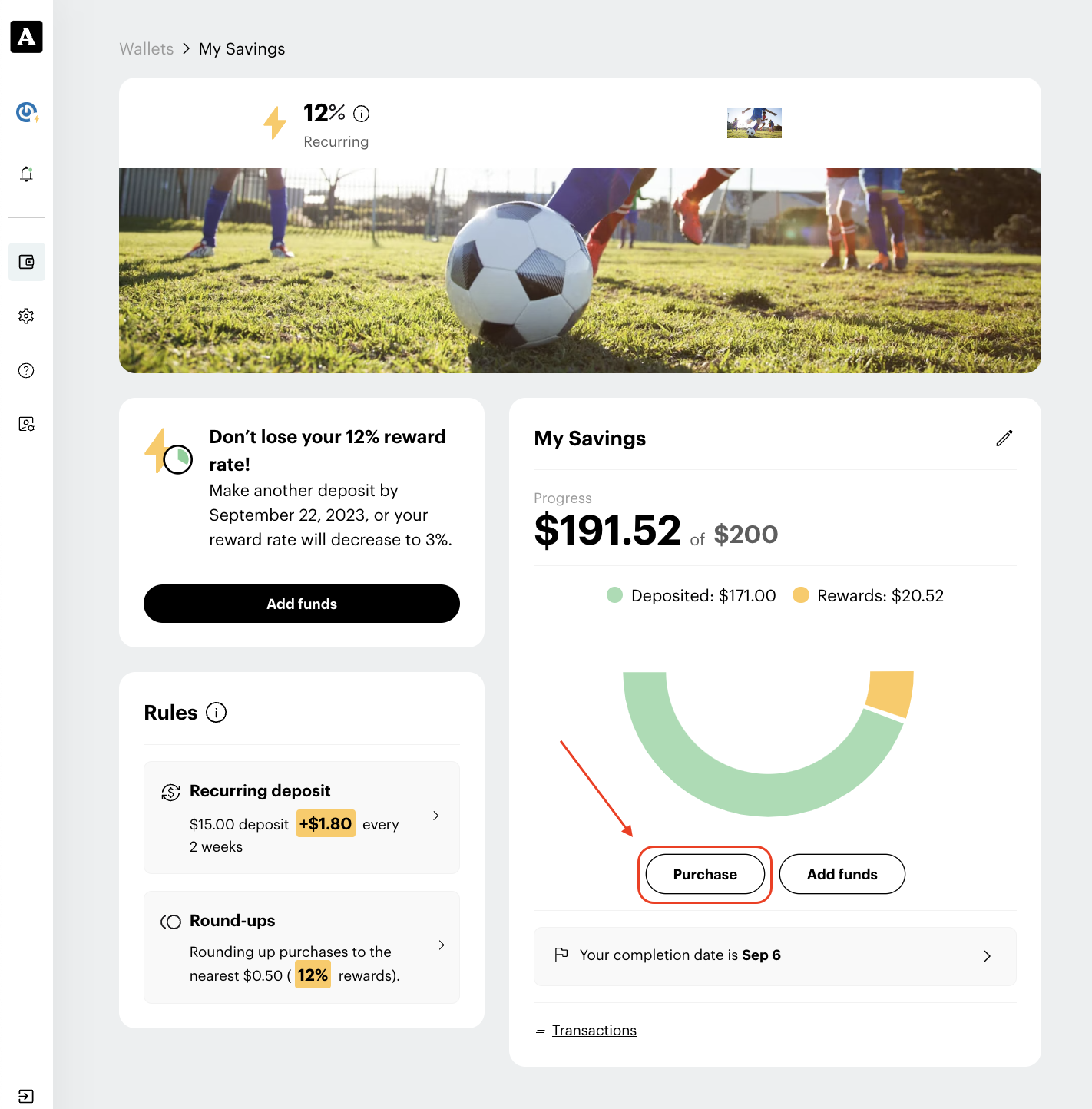 3. Select Purchase on your savings tracker