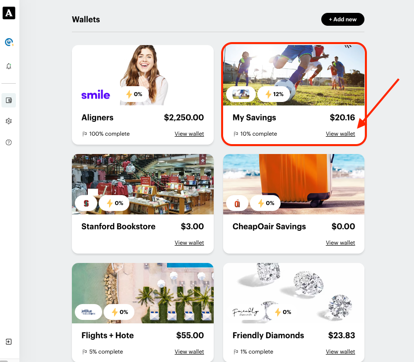 2. Select the Savings goal you would like to purchase from